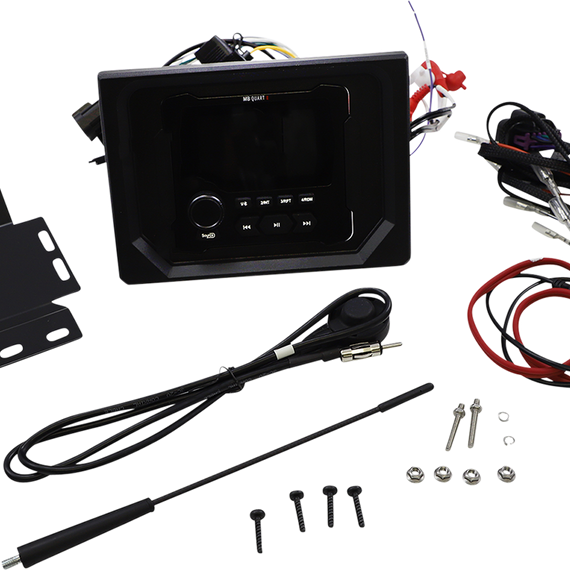 Caracteristicas: AM/FM bluetooth source unit with mounting panel Quick pair immediately connects to the last device that was connected Plug and play harness and waterproof connectors with pre-measured wires included IPX67 rated