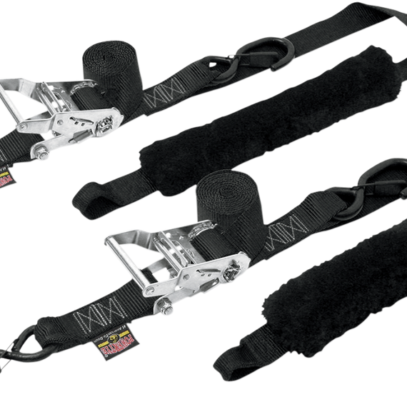 Caracteristicas: 1-1/2" wide Chromacoat ratchet Vinyl-coated with safety latch hooks Sewn-in sheepskin Soft-Tye 6,000-lb. test nylon webbing 1,000-lb. working load Double security stitching Made in the U.S.A.
