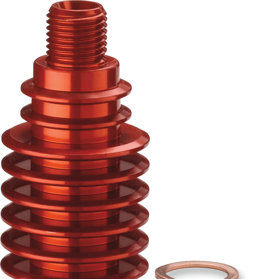 Caracteristicas: It allows the use of the stock bleeder bolt More aluminum surface area contacting caliper to transfer far more heat away Larger fin surface area dissipates heat