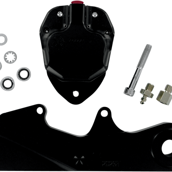 Caracteristicas: Raw metal on black contrast calipers is anodized for a long-lasting high-quality finish Two piston designs for various H-D models (including rigid frames) Hanger brackets and brake pads included For use with 11.5" rotors Made in the U.S.A. The OLD-STYLE Wagner and Kelsey-Hayes (die-cast aluminum OEM) on rear applications have a 3/4" bore master cylinder and WILL NOT WORK CORRECTLY. Not recommended for use with imported stainless steel rotors. Requires use of 5/8" bore master cylinder.
