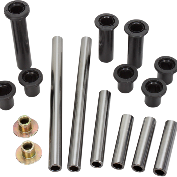 Caracteristicas: Cost-effective kit containing all bearings, bushings, seals, shafts and miscellaneous components to repair the rear upper and lower A-arms and knuckle Two kits required per vehicle