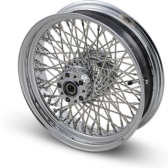 Caracteristicas: Chrome billet aluminum hubs with polished stainless steel spokes and polished stainless steel nipples Wheels come completely assembled and are trued to less than .005" runout Made in the U.S.A. by RideWright Wheels Classic, tube-type spoke design Chrome-plated steel rims DOT approved