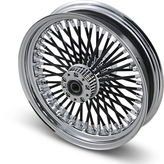 • Chrome billet aluminum hubs with 3/8" stainless steel black spokes and chrome cold rolled steel nipples