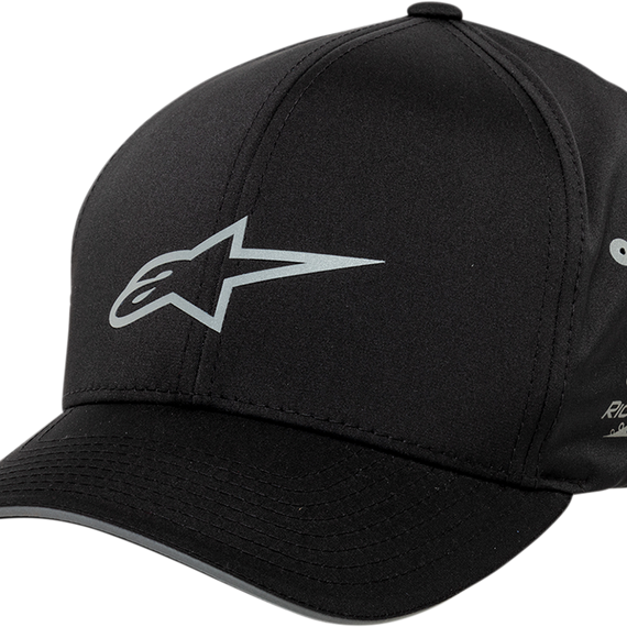 Caracteristicas: Performance wicking curved bill hat with a structured crown Moisture wicking stretch fabric and flex back of hat Reflective sandwich visor, weld eyelets and heat transfer logo Internal and back labeling Ride Dry print logo on left side of hat
