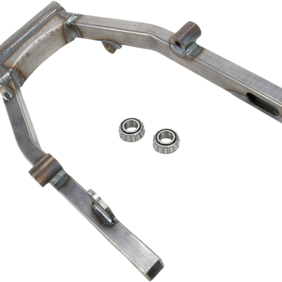 Caracteristicas: Belt drive swingarm is available as an OEM replacement Adjustable swingarms feature bolt-on shock anchor plates which, when adjusted, raise (up to 5/8") or lower the bike (up to 1-5/8") Replacement style swingarm replaces the stock unit and has shock anchors, chain guard tab and brake anchor that are welded in place; available raw and ready to paint Includes bearings Made in the U.S.A.