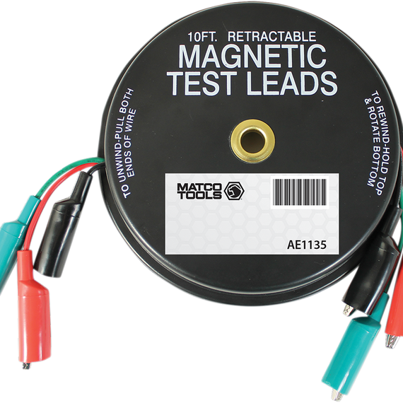 Caracteristicas: Used for testing electrical circuits Retractable test leads pull out and stay at desired length Rewind test leads into its own protective case when not in use Have insulated alligator clips 18-gauge copper wire