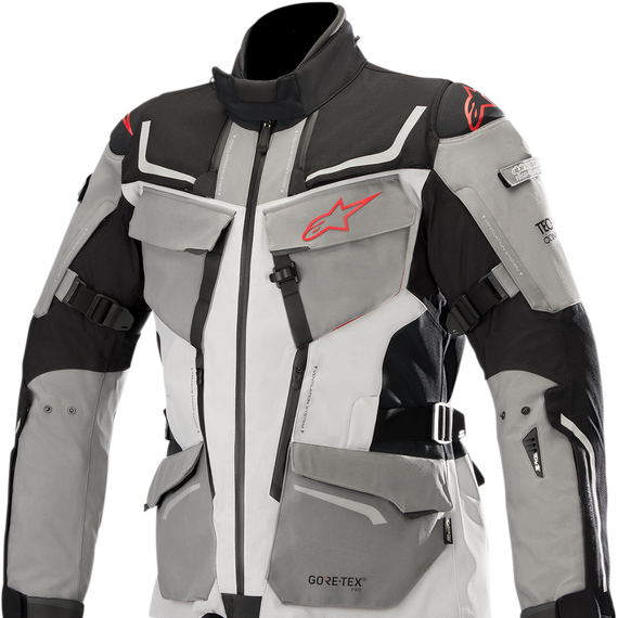Caracteristicas: Advanced ventilation system comprised of multi-air intakes on front and exhaust ports on rear for the highest level of cooling airflow of any Alpinestars touring jacket. Strategically positioned stretch paneling provides optimized all-round fit. Hook and loop grip closure wrist, waist and sleeve adjusters allow for highly personalized fit and helps ensure garment and its protection stay close to the body in the event of a slide. Sleeve adjustment system allows for reduced material bunching for comfort and safety. Multi-storage system comprising of front and chest pockets and rear lumbar compartment for convenience. Incorporates a hydration back pocket and conduits to allow integration of camel pack as an accessory upgrade. Reflective print detailing to improve night/poor light visibility of the rider. Rear utility pocket is removable for convenience.