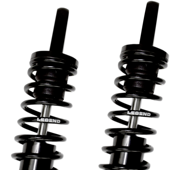 Caracteristicas: Legend’s touring-specific spring rates produce superior ride quality and performance Improved plush ride quality, control, and resistance to bottoming out Extended coil length has a larger “sweet spot” without increasing the overall shock length Unique spring rate offers ability to soften preload and/ or reduce ride height while maintaining a smooth ride Allows minimal preload adjustments when changing between rider weight or total motorcycle load Easy to adjust preload by hand without tools Hard anodized machined aluminum body Legend’s low-friction seals High-flow piston reacts quickly for improved fluid flow management Deflective disc valved damping self adjusts to frequency and ensures controlled performance Spherical mount bearings on top and bottom Standard or heavy-duty spring rates Black bodies with black springs All Legend REVO suspensions are assembled by hand Sold in pairs Made in the U.S.A. Heavy-duty applications are recommended for 500 lb.+ rider and passenger total weight.