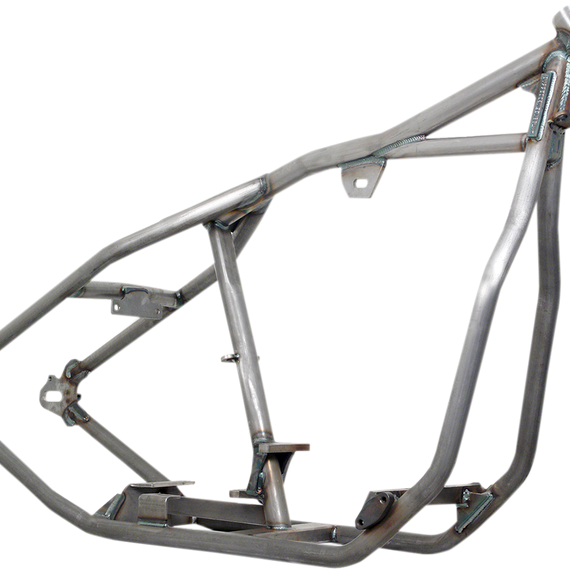 Caracteristicas: Constructed of 1-1/4" DOM steel tubing, mandrel bent, TIG and MIG welded 30° rake, 0" stretch Designed for 4, 5, and 6-speed transmissions; transmission plate sold separately Accepts Evolution motors; clearance for cylinders up to .200" taller than stock Use stock 86-99 Softail oil tank and rear brake caliper (sold separately) Gas tank mounts, rear axle, exhaust bracket, belt guard tabs, and coil bungs sold separately Made in the U.S.A.