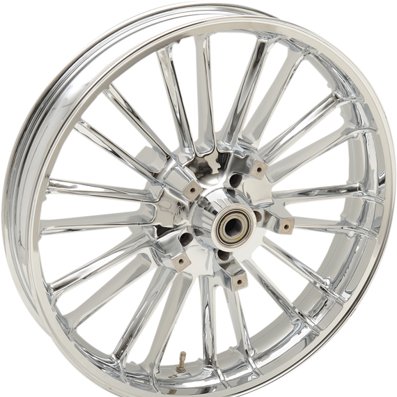 Caracteristicas: Wheels are designed to accept custom lug-mounted Drag Specialties 11.5” rotors "Cast” one-piece design wheels at a fraction of the cost of billet or forged wheels Includes bearings and valve stems installed by Coastal Moto Custom rotors allow the use of the stock style 00-07 calipers
