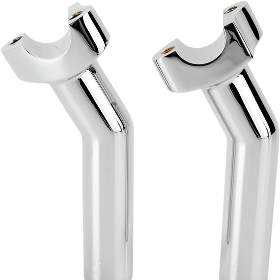 Caracteristicas: These risers are forged from 6061-T6 aluminum for superior strength Drilled and tapped for 1/2"-13 riser bolts (bolts sold separately) CNC-machined for precision fit on handlebars with a 1" diameter clamping area Designed to fit applications with 3-1/2" on-center mounts and will accept most OEM-style top clamps with offset mount holes