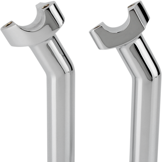 Caracteristicas: These risers are forged from 6061-T6 aluminum for superior strength Drilled and tapped for 1/2"-13 riser bolts (bolts sold separately) CNC-machined for precision fit on handlebars with a 1" diameter clamping area Designed to fit applications with 3-1/2" on-center mounts and will accept most OEM-style top clamps with offset mount holes