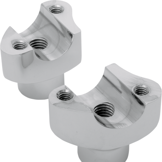 Caracteristicas: These risers are forged from 6061-T6 aluminum for superior strength Drilled and tapped for 1/2"-13 riser bolts (bolts sold separately) CNC-machined for precision fit on handlebars with a 1" diameter clamping area Designed to fit applications with 3-1/2" on-center mounts and will accept most OEM-style top clamps with offset mount holes