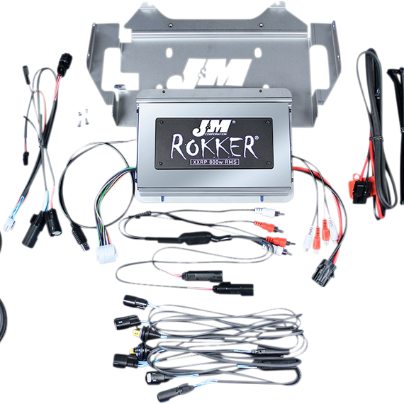 Caracteristicas: Kit includes a full range class D audio amplifier, spec'd at 200 watts RMS per channel X4, (800w total) into 2-ohm load @ 14.4vdc, with dimensions of 8 1/4” Long X 5 1/8” Wide X 1 5/8” Tall Amplifier mounts to the custom made stainless steel 2-piece bracket system, to provide solid and secure mounting inside the fairing The 800w ROKKER XXR amplifier has been dialed in for this specific 4-speaker configuration, to provide maximum highway performance. (Updated amplifier gain/frequency settings as of 12-01/2019) Custom made plug-n-play green-band wiring harnesses are included, along with heavy gauge power/ground wires for the fused battery connection and all necessary mounting hardware J&M's ROKKER XXR series 6.71" speakers have been designed as exact size component/replacements for the stock 6.5" Harley fairing & rear-pod speakers as installed on the 2014-2019 Harley Ultras Spec'd at 2 ohms impedance and 300 watts maximum input (200w RMS - 91db sensitivity), speakers provide the ultimate in raw audio power and include the new custom grills with built-in high-output tweeters They feature a lightweight waterproof one-piece woven-fiber driver cone with super-rigid metal basket design High-density lite-weight Neodymium magnet structure, specially coated to maintain flux-strength integrity even at extreme operating temperatures High efficiency vented voice-coil for improved cooling when operating at high volume levels for extended periods This ROKKER XXR EXTREME custom installation KIT has been engineered to be 100% plug-and-play to maintain the integrity of your Harley's internal wiring harness, it is tuned for the Stock-Harley-Radio-Flash and includes a complete installation/operation instruction manuals Special flash needed