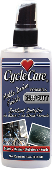 • Cycle Care® Ruff-Cutt is a spray-on, wipe-off instant detailer specifically formulated for denim finish colors