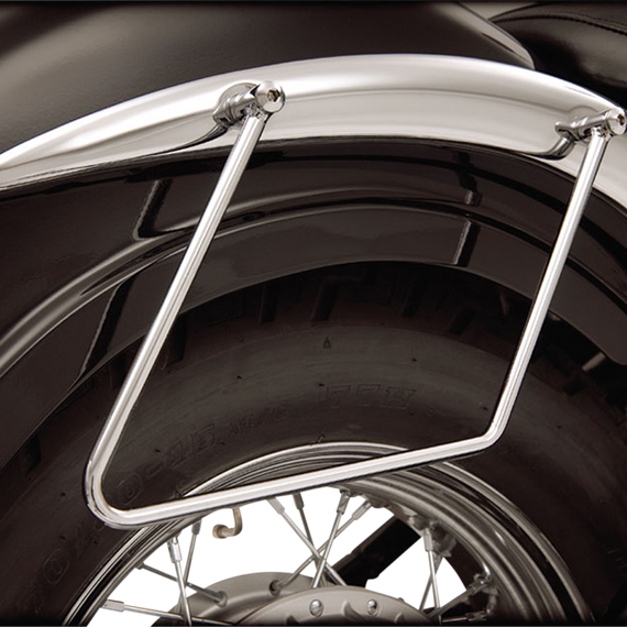 Caracteristicas: Chrome steel supports mount to rear fender bracket with new hardware Holds saddlebags away from brake caliper, swing arms and rear tire No drilling required Additional hardware may be required to install if an aftermarket backrest has been installed.