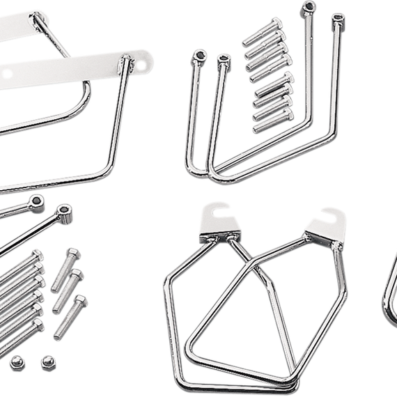 • Chrome-plated steel brackets hold throw-over saddlebags away from brake caliper and swingarm