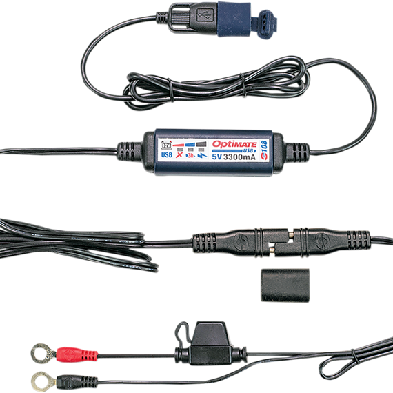 Caracteristicas: Charge your phone, GPS, camera & tablet with your weatherproof charger, on your motorcycle or up to 80" / 200cm away from 12V supply Low input (12.3V) auto-off protects vehicle battery from total discharge - Supply range: 12.3 to 16Vdc 5V 3300mA true output via 40" / 100cm USB output cable with sealing cap for USB socket Short circuit, overheat, over-voltage protection Apple 1A charge confirmation ‘handshake’ built in