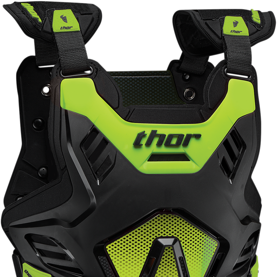 Caracteristicas: Adjustable shoulder straps Removable panels Adjustable elastic torso strap with ratcheting buckle closure Lightweight, durable injection-molded panels Strategically placed ventilation ports for maximum cooling Soft Bio-Foam padded chassis for maximum comfort Can be used with Thor number plates and back strap