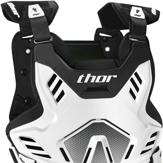 • Adjustable elastic torso strap with ratcheting buckle closure