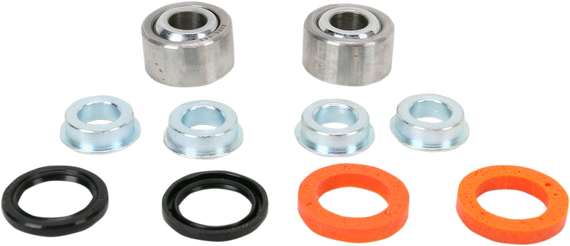 Caracteristicas: Kit contains two PTFE spherical bearings (cup bearings when used), four seals and related components Each shock kit rebuilds both ends of the shock absorber Some shock absorbers on Kawasaki and Honda models use a clevis to connect shock to the linkage. The bearing, collar and seals that are pressed into the linkage arm are included in the Pivot Works Shock Kit.