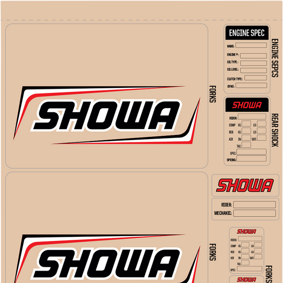 Caracteristicas: Contain forks, shock and suspension settings and engine settings decals Factory look "spec decals" for rider specific settings Write down your settings like the factory race teams do Printed on clear, 15-mil vinyl
