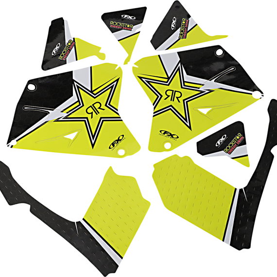 Caracteristicas: Includes left and right shroud, airbox and tank decals (if applicable) Produced with super think Ultra Curve vinyl and Moto specific adhesives Made in the USA