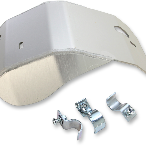 Caracteristicas: Protect vital engine parts and cases from rocks and debris Clear anodized for corrosion protection and good looks Skid plates made from 3/16" 5052 H-32 aluminum Smooth underside won't snag when crossing logs Oil drain hole on all required models Heat-treated chromoly steel clamps keep plates mounted securely All mounting hardware included Made in the U.S.A.