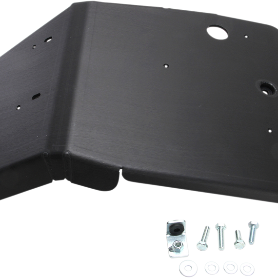 Caracteristicas: Protect vital engine parts and cases from rocks and debris Clear anodized for corrosion protection and good looks Skid plates made from 3/16" 5052 H-32 aluminum Smooth underside won't snag when crossing logs Oil drain hole on all required models Heat-treated chromoly steel clamps keep plates mounted securely All mounting hardware included Made in the U.S.A.