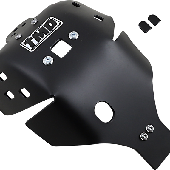 Caracteristicas: Composite impact absorbing plastic with silicone additive to reduce friction Built for rough MX, off-road and enduro riders who need maximum racing protection TMD skid plates are designed to allow maximum frame flex Precision-formed (not molded) with no welds to crack or creak Up to 45% lighter than aluminum skid plates and reduced engine bounced to the rider 35% lighter than alloy plates All hardware is 100% replaceable Covers frame rails, water pump and ignition cover Reduces noise and vibration Engineered to provide the best overall coverage