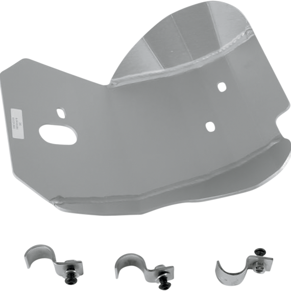 Caracteristicas: Protect vital engine parts and cases from rocks and debris Clear anodized for corrosion protection and good looks Skid plates made from 3/16" 5052 H-32 aluminum Smooth underside won't snag when crossing logs Oil drain hole on all required models Heat-treated chromoly steel clamps keep plates mounted securely All mounting hardware included Made in the U.S.A.
