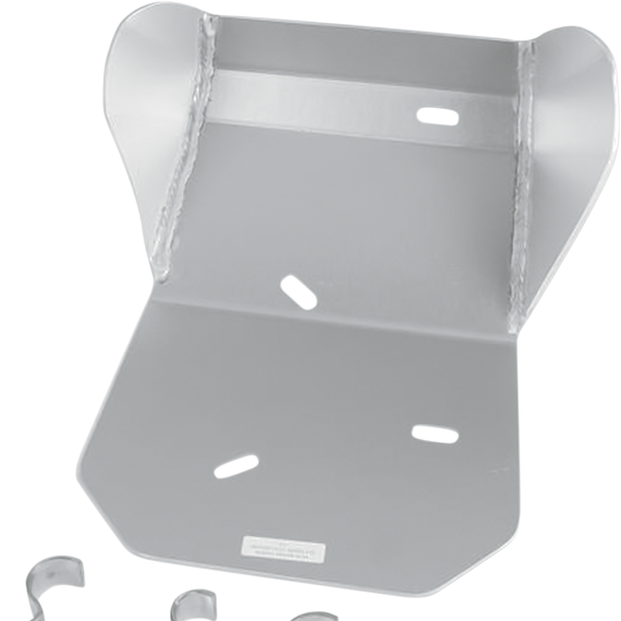 Caracteristicas: Protect vital engine parts and cases from rocks and debris Clear anodized for corrosion protection and good looks Skid plates made from 3/16" 5052 H-32 aluminum Smooth underside won't snag when crossing logs Oil drain hole on all required models Heat-treated chromoly steel clamps keep plates mounted securely All mounting hardware included Made in the U.S.A.