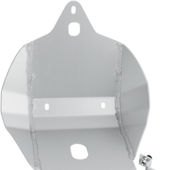Caracteristicas: Protect vital engine parts and cases from rocks and debris Clear anodized for corrosion protection and good looks Skid plates made from 3/16" 5052 H-32 aluminum Smooth underside won't snag when crossing logs Oil drain hole on all required models Heat-treated chromoly steel clamps keep plates mounted securely All mounting hardware included Made in the U.S.A.