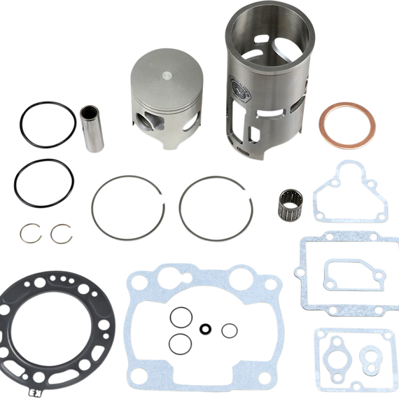 Caracteristicas: The foremost compatible top-end rebuild kit all in one box Feature a Moly2000 centrifugally-spun, cast cylinder sleeved iron bore to provide better ring seal for better compression, more torque and more horsepower 2-stroke kit comes complete with wear-resistant Moly2000 centrifugally-spun, cast cylinder sleeve, matching pro-forged or pro-cast piston kit, wrist pin bearing and complete top-end gasket set