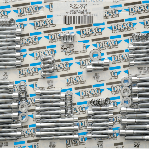 • Complete motor sets for 07 and later Big Twin include bolts for primary, cam, cam sensor, derby, rocker box, transmission top, transmission side, lifter block and clutch covers