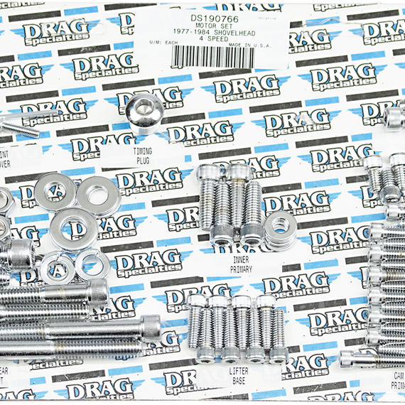 Caracteristicas: Contain socket-head bolts for cam, primary, generator, sprocket, rocker box, top motor mount, lifter base, point or magneto cover Made in the U.S.A.