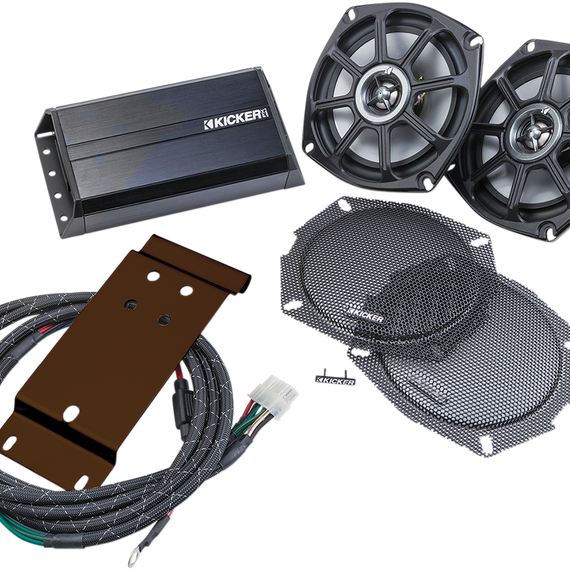 Caracteristicas: Small footprint, high-power amp with very low current draw 100% Plug-and-Play wiring harness No cutting or drilling – it mounts and plugs directly into factory locations Seamless integration with the factory radio – no need for an aftermarket head unit Minimum impact on your motorcycle’s charging system KICKER-tuned for premium sound