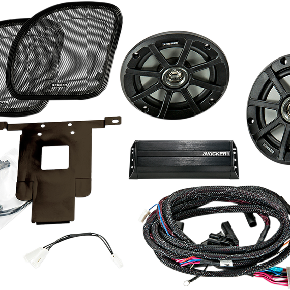 Caracteristicas: Small footprint, high-power amp with very low current draw 100% Plug-and-Play wiring harness No cutting or drilling – it mounts and plugs directly into factory locations Seamless integration with the factory radio – no need for an aftermarket head unit Minimum impact on your motorcycle’s charging system KICKER-tuned for premium sound