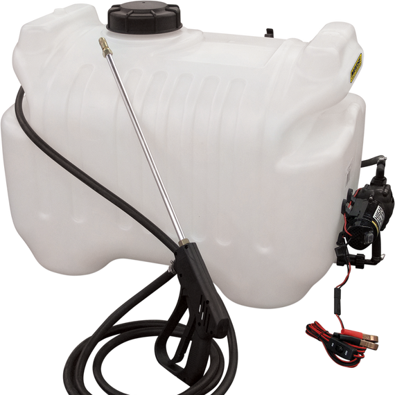 Caracteristicas: 40-gal. corrosion-resistant polyethylene tank 12V diaphragm 2.1 GPM high-flo pump 60 psi max 8’ wire harness with clips and on/off switch Poly clips for handgun storage Deluxe handgun with adjustable pattern tip and 15’ of hose Maximum horizontal throw - 35’ Maximum vertical throw - 25’ Ready for immediate use Made in the U.S.A.