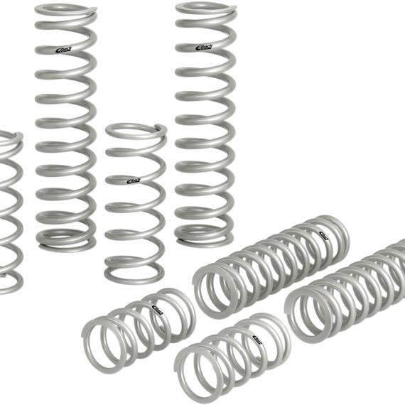Caracteristicas: All systems include springs, sliders, stop rings and complete setup instructions Race-proven durability and quality Engineered and tested by drivers Designed for 2- and 4-seat vehicles Adjustable shock lockout collars included to allow fine-tuning of the transition point of the dual-spring setup Improves turn-in response and better power hookup out of the turns Smoother ride over rough terrain Stiffer spring rates prevent bottoming in the G-outs Made in the U.S.A.