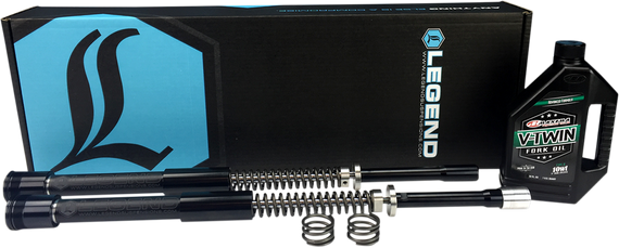 Caracteristicas: Improve the stability, cornering and traction of your motorcycle Smooth, controlled ride quality; kits eliminate front-end dive during aggressive braking and maneuvering Firm feel for high-speed sweeping turns Eliminate bottoming out on large bumps or potholes Reduce dragging of floorboards or pegs Kits include two mono-tube, dual-chambered fork damping cartridges Cartridges have nitrogen chambers with internal floating pistons Machined 303 stainless steel threaded fork preload adjusters Increased range of preload settings allows fine-tuning of the front suspension for riding style and rider weight Performance fork spring rate Designed for optimum performance with Legend® rear suspension systems Easy installation Includes Maxima Racing Oil in cartridges and quart bottle Lifetime Warranty Made by hand in Sturgis, SD USA This product is NOT designed for use with 21" and 23" wheels