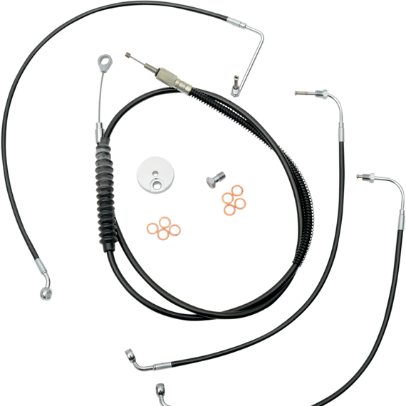 Caracteristicas: Standard kits include clutch line, brake lines, chrome "T" brake line junction, banjo bolts, fittings and copper crush washers Correct length brake/clutch lines and wire extensions included to complete a handlebar swap Electrical wire extensions NOT included (available separately) Made in the U.S.A. Kits are based on using 2" risers with Ape Hanger handlebars