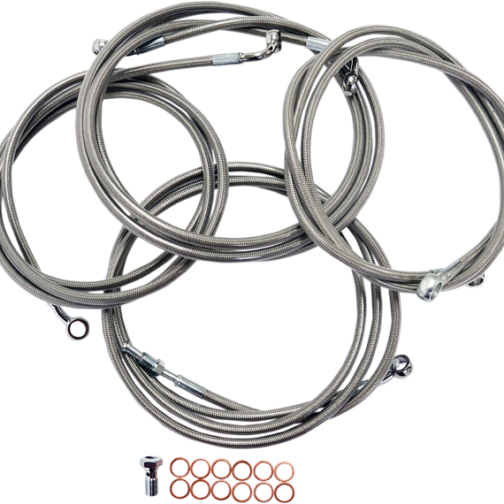 Caracteristicas: Take "cable calculation" headaches out of swapping handlebars Standard kits include the correct length brake/clutch lines and wire extensions to complete a handlebar swap; electrical wire extensions not included (available separately) Standard kits include clutch line, brake lines, chrome "T" brake line junction, banjo bolts, fittings and copper crush washers Made in the U.S.A. Kits are based on using 2" risers with Ape Hanger handlebars