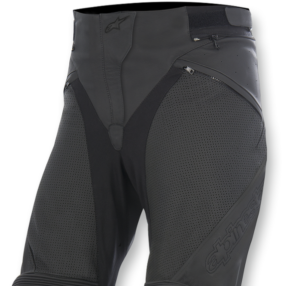 Caracteristicas: Optimized for a women's performance fit Durable 1.2/1.4 leather outer construction Perforated leather panels for optimized airflow Fixed knee and shin protectors Strategically placed poly-fabric stretch panels helps movement and comfort on the bike Pre-curved leg construction and high back profile Zippered volume extender on calf area Stretch accordion on knees and back for optimized comfort while riding Hook-and-loop-material and D-ring waist adjustment for improved riding fit Snap button and hook closing zip fly Two zippered hand pockets Reinforced seat area Reflective detailing to improve rider visibility