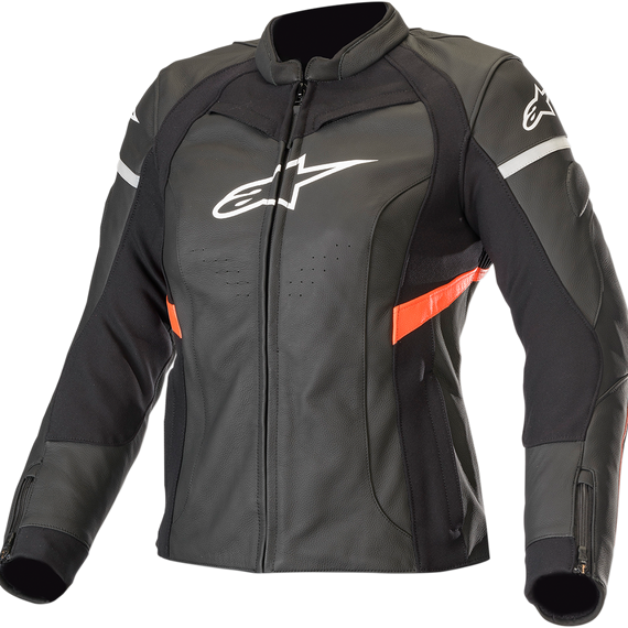 Caracteristicas: Optimized for a women's performance fit Main chassis constructed from 1.3 mm premium bovine leather Large accordion stretch panels help movement and comfort on the bike Stretch panels on sleeves and chest further improve fit and feel Waist adjustment for an improved riding fit Two zippered hand pockets for real-world practicality Waist connection zipper allows quick and easy attachment to Alpinestars riding pants Print logos and direct print graphic details Zippered air intake vents are strategically positioned for optimized airflow Localized perforations for excellent ventilation and internal airflow Low profile collar construction with microfiber comfort edging plus 3D textured fabric comfort inner collar lining for high levels of rider comfort Pre-curved sleeve construction reduces fatigue Reflective details to make the rider more visible to other road users Chest and back compartments are designed to accommodate the Alpinestars Stella Nucleon chest and back inserts, available separately Multiple snap button system to integrate the Level 2 Alpinestars Nucleon Back protector Waterproof inner wallet pocket for peace-of-mind storage Inner removable thermal liner for versatility Bio Armor shoulder and elbow protectors