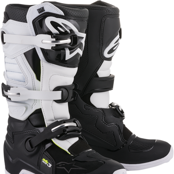 • The inner, medial side of the boot is specifically designed for control and features a thick and wide stamped suede upper panel and PU protective lower section designed for excellent contact and grip against the bike while guarding against heat