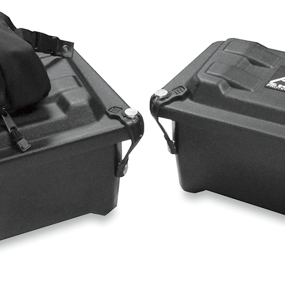 Caracteristicas: Constructed from vacuum formed HMW-PE material with structure that creates strength and durability in a design that includes a recessed bottom to accommodate the differing tunnels on the market The lid is hinged and is removable, with custom polyurethane straps made specifically for the SPG Black Box Hold-down straps combine the exact amount of tension and flex to create a watertight seal around the cover Billet-turned aluminum fasteners and hook posts make removing and attaching the straps an easy task when out on the trail Flanged edge of the box incorporates a rubber seal that keeps the elements where they belong and the box dry Each box includes 1" cubed foam that enables the user to cut out the specific pockets/shapes they need to carry valuable items securely Boxes have foam attached to the lid and a permanent base foam in the bottom of the box All hardware is included in each box to fasten to any tunnel on the market, including tunnels with raised coolers or the T-slot design found on Polaris snowmobiles The small version of the Black Box can be mounted to any tunnel with a flat space which has at least 10” or more (care should be given to be aware of taillights and exhaust outlets) Large Box includes an additional goggle bag which can be mounted to the cover of the box with rivets and adhesive back hook-and-loop material Goggle bag includes a durable water-resistant zipper along with urethane-coated, padded foam structure to keep contents safe and protected Bag can be used for other items in addition to goggles Made in the U.S.A.