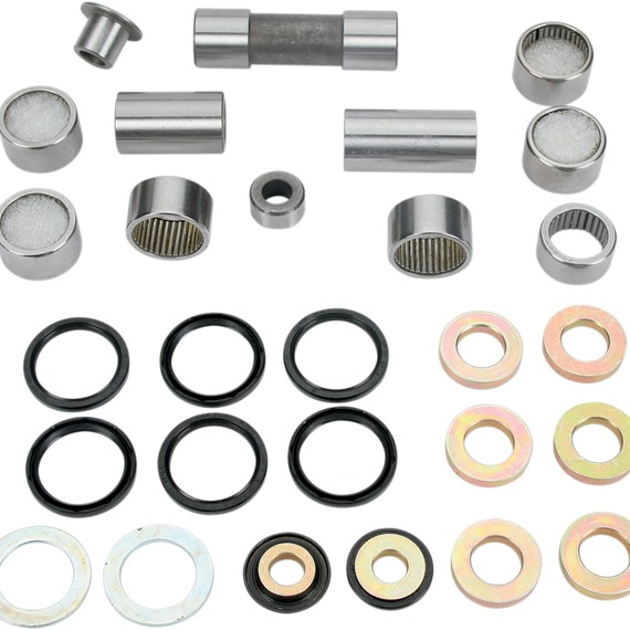 Caracteristicas: Include the lower shock bearing and all other parts necessary to rebuild the suspension linkage 52100 bearing steel and hard-plated spacers resist wear and rust Each kit includes the lower shock bearing, all the shafts, seals and spacers in the link, link arm and lower shock mount