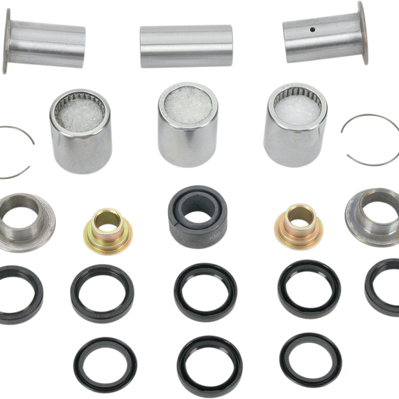 Caracteristicas: Include the lower shock bearing and all other parts necessary to rebuild the suspension linkage 52100 bearing steel and hard-plated spacers resist wear and rust Each kit includes the lower shock bearing, all the shafts, seals and spacers in the link, link arm and lower shock mount