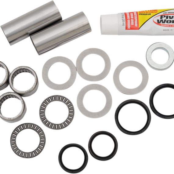 Caracteristicas: Restore handling and suspension control lost due to worn or rusted swingarm components Convenient kit eliminates looking up many part numbers Each kit contains bearings, pins, collars and seals manufactured to OEM specifications for a perfect fit Considerable savings over OEM prices